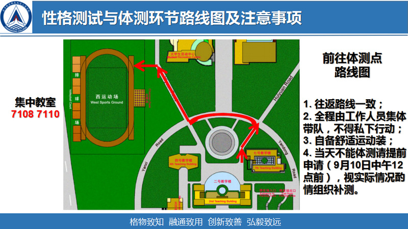 图1 性格测试与体测环节路线图及注意事项