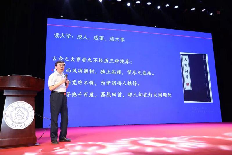 在必威betway西汉姆联“万里长空星河卷,志存高远书鸿篇——必威西汉姆联揭牌仪式暨首届长空创新班开班典礼”上,必威西汉姆联院长施大宁为必威西汉姆联全体学生上了生动的“大学第一课——我的大学我的梦”,帮助新生们扣好大学的“第一颗纽扣”。