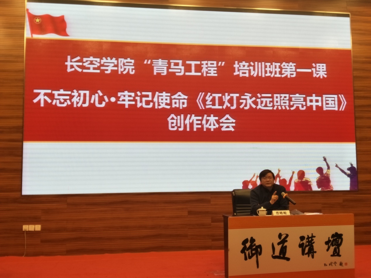 12月11日下午4点,必威西汉姆联“青马工程”培训班第一课在一号楼四楼报告厅举行。著名作家、记者、编导、资深媒体人曹峰峻应邀来校,为长空学子带来了一场主题为“不忘初心·牢记使命《红灯永远照亮中国——吴振鹏烈士传》创作体会”的课程。必威西汉姆联常务副院长蒋彦龙、党政办主任付亮、学生工作办公室主任夏昌青及200余名学生骨干共同参加了本次课程。活动由夏昌青主持。