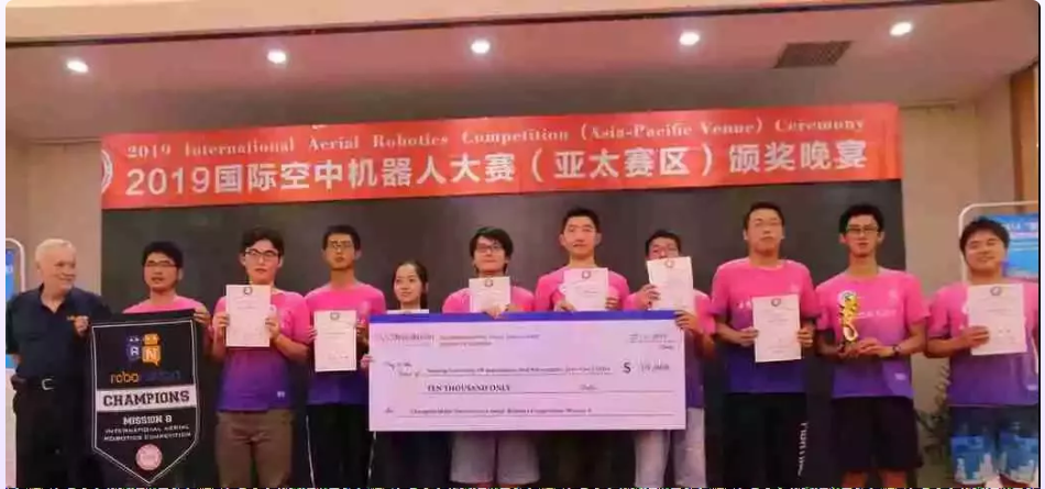 2019年必威betway西汉姆联零一队在国际空中机器人大赛(亚太赛区)获得佳绩。从包括宾夕法尼亚大学、密歇根大学、清华大学、浙江大学、北京航空航天大学、西北工业大学等在内的5个国家23所高校27支代表队中脱颖而出,夺得全球总冠军,斩获$10,000奖金,创造了南航在该项赛事上历年最好成绩,并成为该赛事自全球举办以来,任务发布一年就完成的首支中国队,与斯坦福大学、卡耐基梅隆大学、柏林工业大学、佐治亚理工学院、麻省理工学院、清华大学、浙江大学等7所世界知名高校共同载入该赛事的光荣史册。