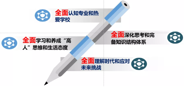 另外,我还想谈一下专业认知我们同学们要达到的目标和要求。专业认知教育是一种学术启蒙,通过这个专业认知教育,我们要做到“四个全面”: