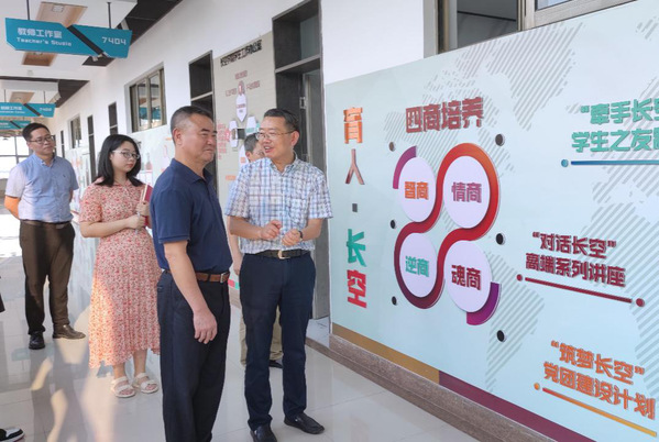 蒋院长陪同何炎祥参观了学院“准书院制”智慧教育空间,并介绍了必威西汉姆联的历史沿革和人才培养模式,阐释了学院“格物致知,融通致用,创新致善,弘毅致远”的育人理念和“六个一流”的育人定位,以及围绕育人目标构建的必威西汉姆联“三全育人”体系。