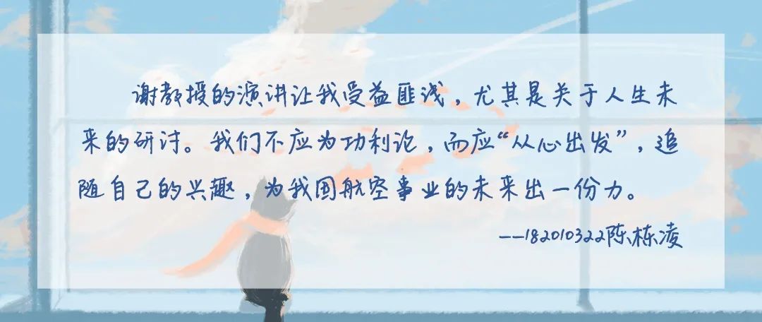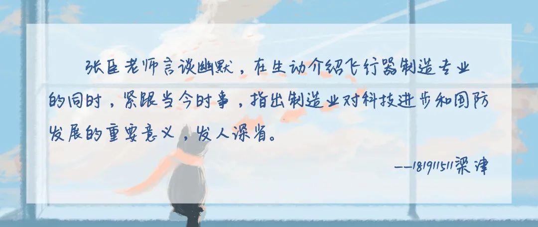 张老师细致的讲解使同学们对“飞制”专业有了更深的了解,也引发了大家对未来的畅想,对于同学们针对专业学习、发展等发面的困惑,张臣老师一一给出了回答。