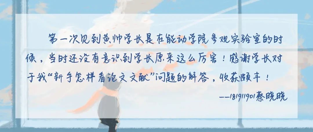 我其实是一个更加倾向于应用知识的人,对特别深奥的理论很少追究,在我看来,知识的掌握程度只需不影响使用即可,大学更重要的是培养自己各方面的能力。在未来大三大四的生活中,你们将接受许多科创竞赛的训练,在这过程中,你们不要收敛自己的好奇心和勇气,而是要大胆尝试,走出舒适圈。在你们慢慢接触科创的过程中,你们会发现老师交给学生一个项目的时候,于老师而言结果其实是清楚明白的,但是有很多的细节问题老师无暇顾及,就会交给学生去做。完成这项任务不仅需要付出时间精力去自我学习,更需要去发现问题,发现问题是学习生活中最重要的能力之一,希望你们在大一大二的生活中,最大限度的解放自己的思想,这对你们日后接触科研、步入社会,都大有裨益。