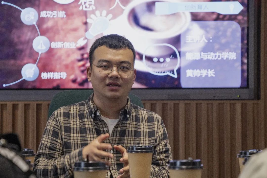 10月27日,来自能源与动力学院的博士在读生黄帅为长空学子带来了本学期第一场“一杯咖啡的故事之‘创’想大学”活动。黄帅学长幽默平和,交流过程中很快与同学们打成一片,他侃侃而谈,从自己专业领域的科普开始,依次讲述了他的求学经历和心态、对科创竞赛的热衷、对学习工作的看法和方法,并针对出国交流和科创赛事与同学们进行了一番畅谈,给出了许多宝贵的意见。