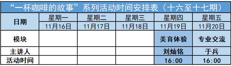 本周一杯咖啡的余温还未散去,下周精彩的一杯咖啡接踵而来。在“正片”来临之前,让我们先前瞻一下华丽的嘉宾阵容吧!