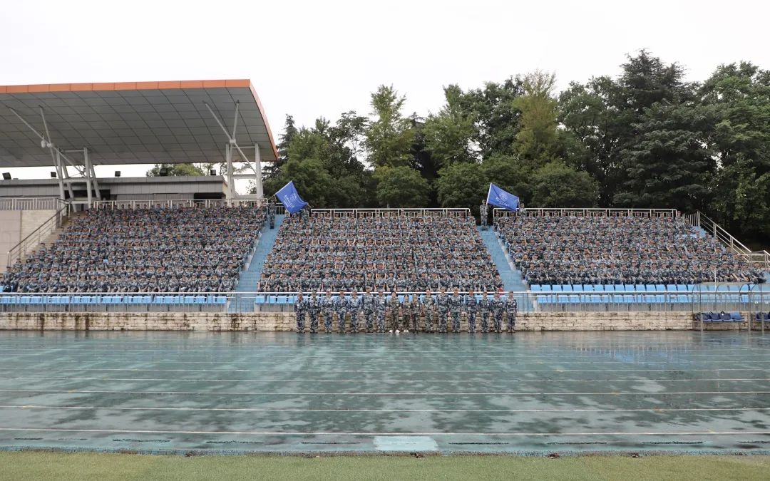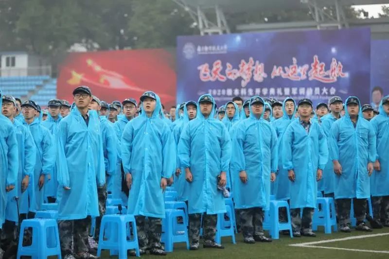 新生开学典礼暨军训动员大会在雨中隆重举行,淅淅沥沥的秋雨将西操笼罩在雾气之中。学子的衣装被雨浸湿,火一般的热情却丝毫没有衰减。对于这些少年,这场恰到好处的秋雨洗去了浮躁,洗去了不安,洗去了懵懂,它让每一位少年从此焕然一新。东坡先生曾在雨中高唱“谁怕,一蓑烟雨任平生”,长空学子在雨中开训注定不凡,它寓意了在未来的生活中,他们亦将无惧风雨。