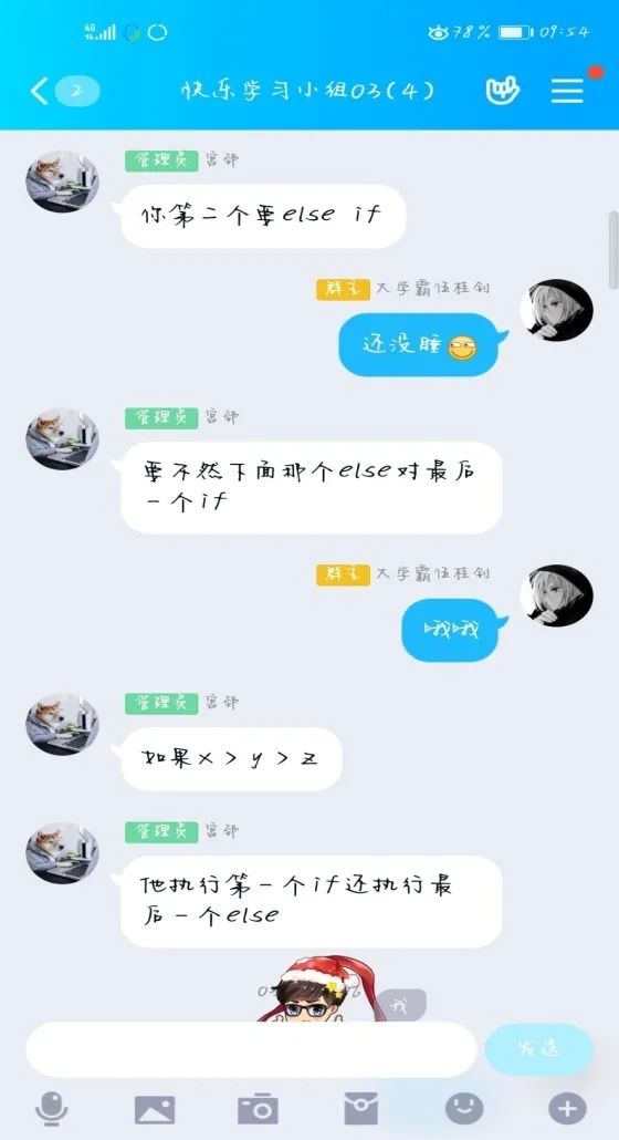 每个学习小组中都有一两位“学霸”、“大佬”,除了带领组员开展日常问题讨论外,他们也毫不吝啬的分享自己的学习经验,这无疑成为了学习小组进步最好的加速器。