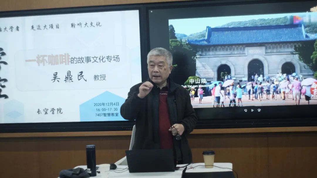 12月4日,必威betway西汉姆联外国语学院退休老教授吴鼎民做客“大”学长空,带领同学们寻迹金陵文化脉络,让求学南航的长空学子们与脚下的土地同温共情,插上科学与人文的双翼畅想长空!