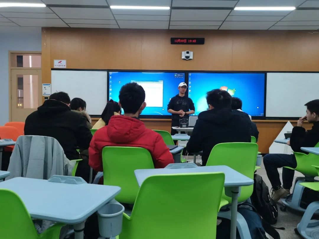 简单的自我介绍后,邹佳均以过来人的身份与学弟学妹们分享了自己对于大一生活的建议:学习一些实用的软件如solidworks、CATIA,以及一些编程语言,为后续学习打下基础。邹佳均还建议同学们多将时间投入自己感兴趣的事物中来,丰富自己的见识。