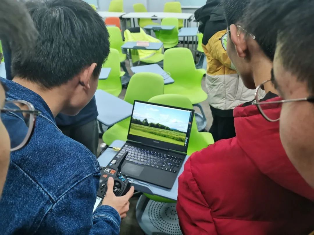 紧接着,邹佳均在电脑上展示了“模拟飞行”的软件,并向大家介绍了航模遥控器的使用方法,他还鼓励同学们上来亲手操作一番,感受“驾驶飞机”的快感。通过学长的手把手教学,同学们逐渐感受到了其中的奥妙,越来越多的人前来尝试。