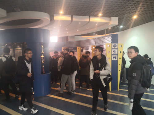 同学们首先参观了中心的实验室与成果展示厅。校大学生电子设计竞赛负责人洪峰老师介绍到,中心设有科创竞赛训练专用基地,拥有物联网、机器人等6个主题创新区及2个大学生社团,配备有贴片、波峰焊、切割机等精密仪器设备及工具。每个主题创新区还配备专业指导教师与参赛经验丰富的高年级学生为同学们提供指导帮助。此外,洪峰老师还对成果展示厅中陈列的历届获奖作品进行了部分展示与讲解,更加激发起同学们对于科创的浓厚兴趣。