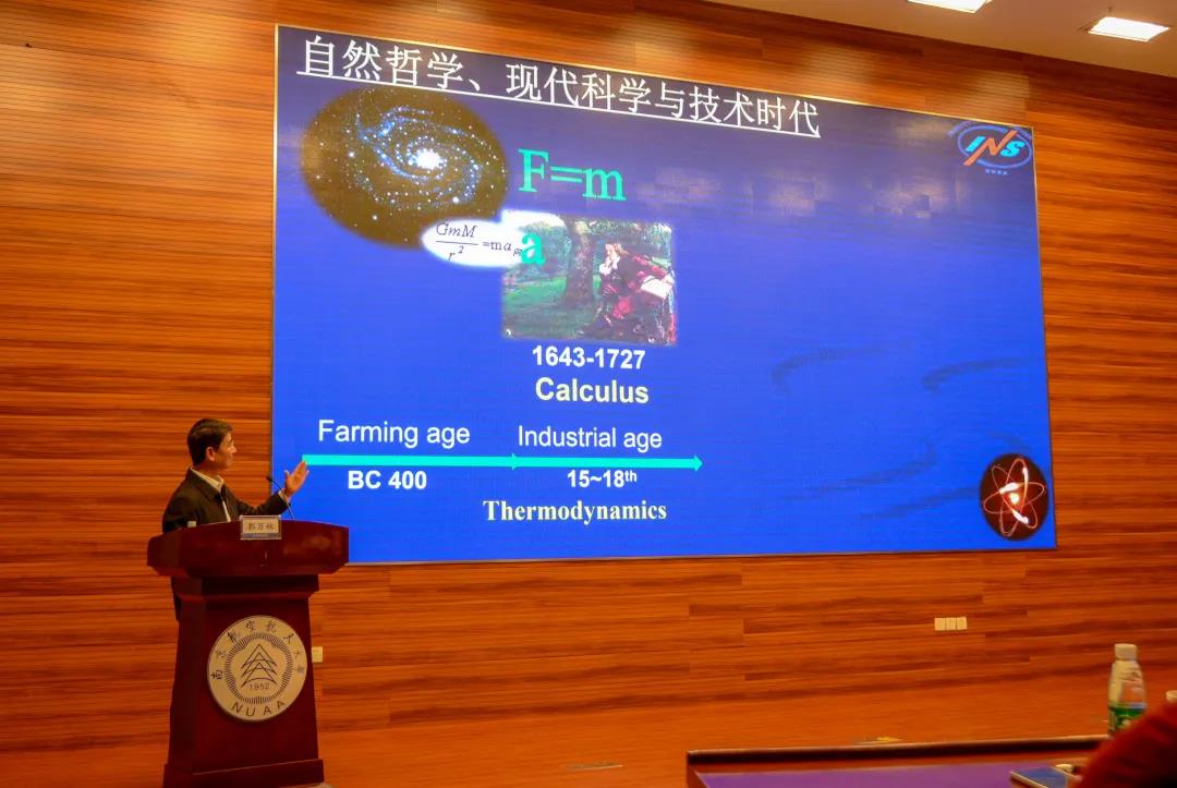 随后郭院士以“自然哲学、现代科学与技术时代”为话题,讲述了人类从农耕时代一步步发展到如今的信息化时代的科学技术发展历程,展示了大学能给学生带来的知识体系之丰富程度。