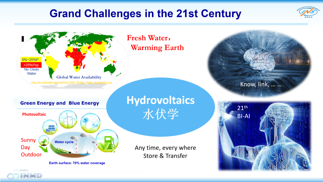郭院士阐述了“走向未来”的方向,他讲述了能源、水资源与环境问题等21世纪人类面临的巨大挑战,并介绍了针对能源问题未来的科技发展方向,提及了郭院士团队提出的 “水伏学”概念。