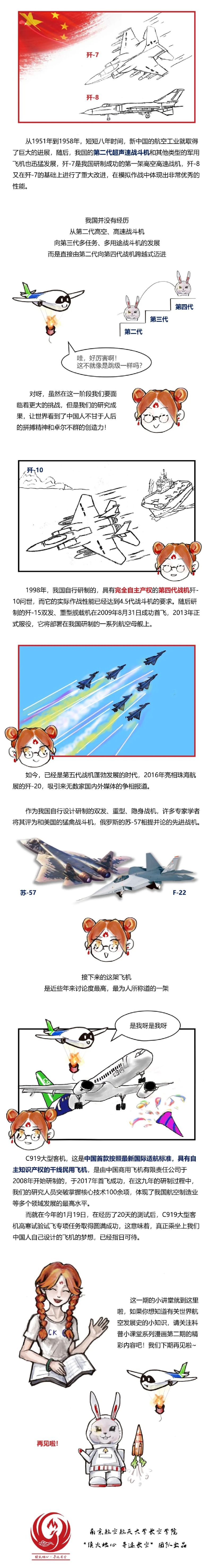 从吉祥物到卡通主讲人,从故事框架到语言风格,漫画创作小分队事无巨细、通力合作,精心制作了讲述航空航天史的科普小课堂系列漫画。漫画从美苏航空航天争霸的世界史到中国独立自主发射“东方红一号”中国史,再到南航航空航天专业的发展史,让我们从不同维度了解航空航天的发展历程,在充分展现我国航空航天繁荣发展的同时,客观认清我国的发展现状,激励新一代长空人不忘初心,牢记使命,为我国航空航天事业砥砺前行!