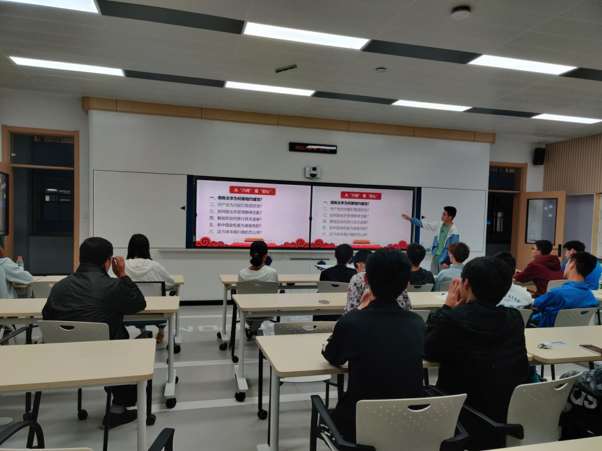 最后,支部成员黄萌阳、熊文博、陈怿健等主动与大家分享了对本次主题团课的感触与体会,他们结合自身真实经历谈及了本次主题团课的启发与收获,以及作为共青团员的光荣感与使命感,获得了同学们热烈的掌声。