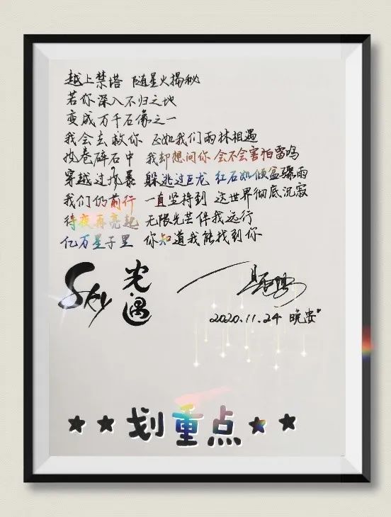 这一年里一直自嘲想做一个gentle man,明明看不清前路却一如既往为自己加油鼓劲,始终对世界抱有善意。虽然身处至暗,但是我却会收到人生中第一束花,却会在桌上闻到点点的梅香,却会在深夜时收到老同学一句简单的“加油”,却会在书本之间看到画上笑脸的便利贴,却会在门卫室收到暖心的礼物……这一束束微光,组成了磅礴的银河,点亮整个夜空。