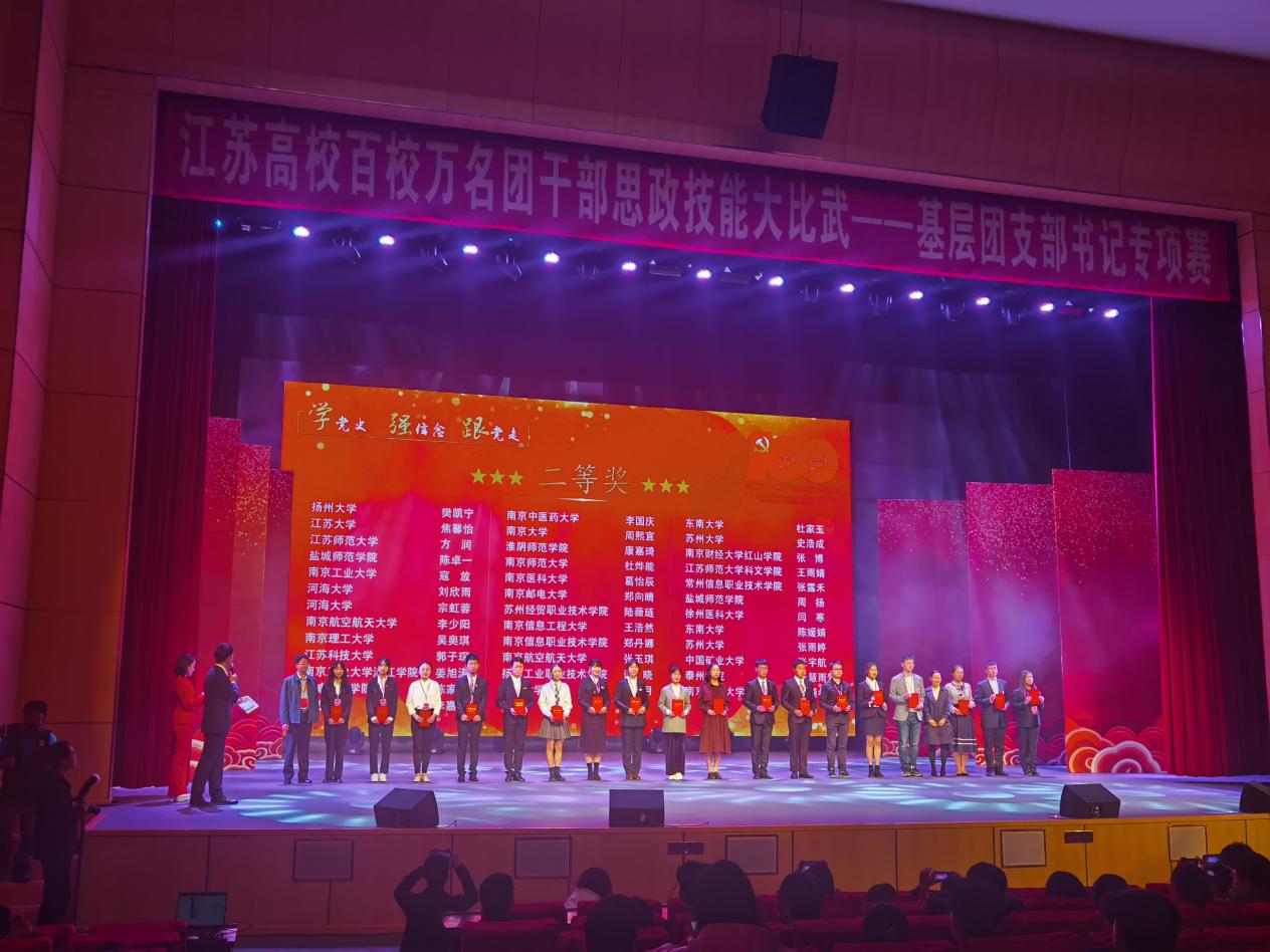 4月25日,“学党史、强信念、跟党走”江苏高校百校万名团干部思政技能大比武基层团支部书记专项赛在江苏科技大学完美落幕。必威西汉姆联19级学生李少阳荣获二等奖。
