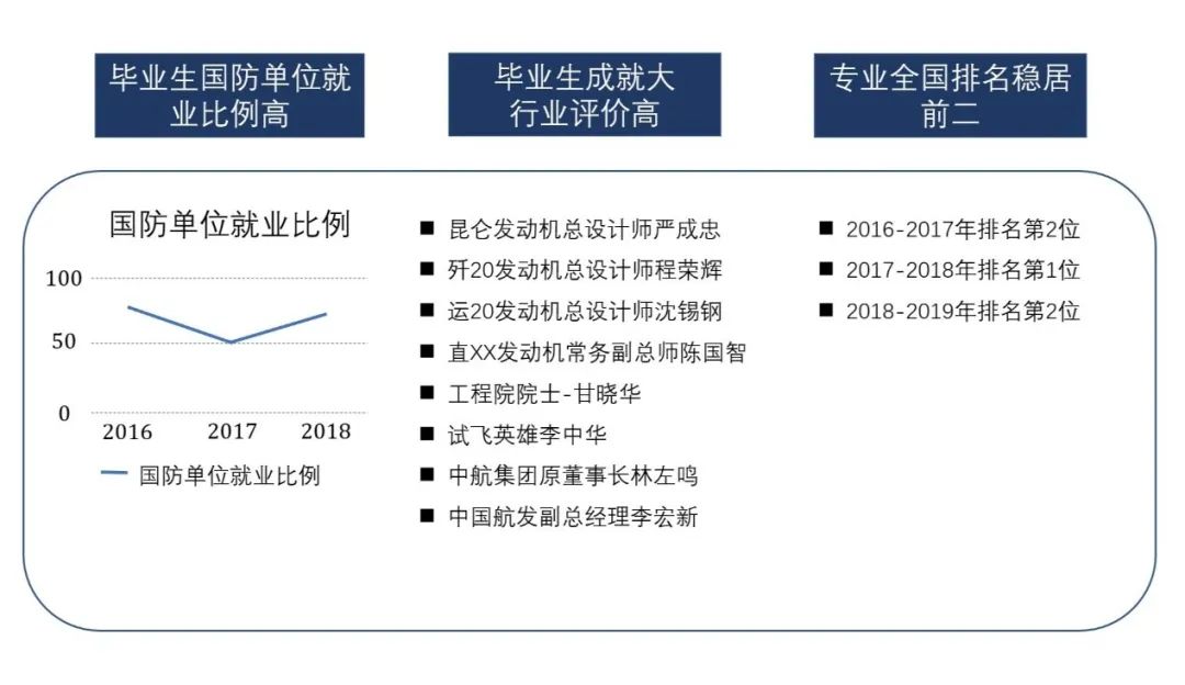 并且,本专业毕业生的行业岗位契合度高,事业发展能力强,成为承载我国航空发动机行业的主力军,在科技界、企业界、政界和军界大放异彩,成长为各行业中的精英人才。他们在我国的国防建设、国民经济建设中发挥了巨大作用。