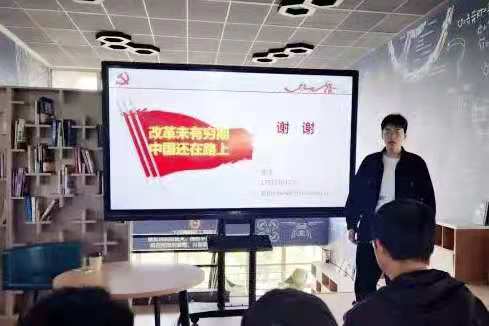 活动伊始,赵圣同学首先向同学们讲述了学习党史的重要性和必要性,紧接着陈老师和同学们一同观看了由同学们准备的有关改革开放的记录短片。