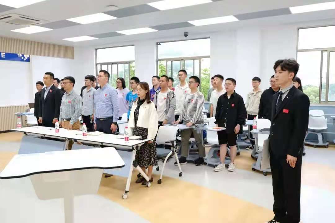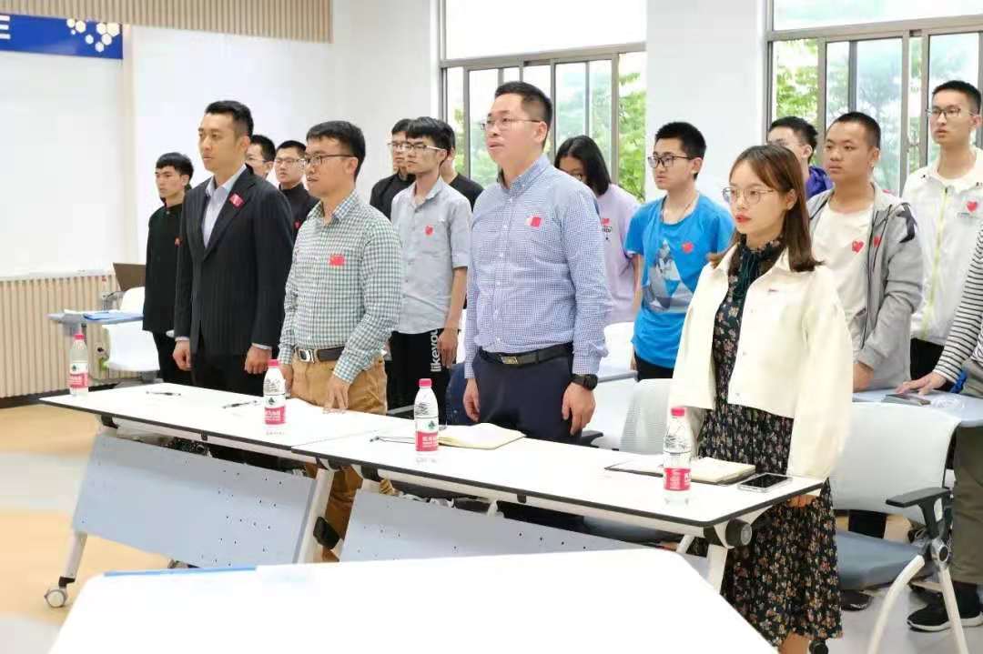 在党史课堂开始之前,1820109支部全体成员观看升国旗视频,奏唱国歌。