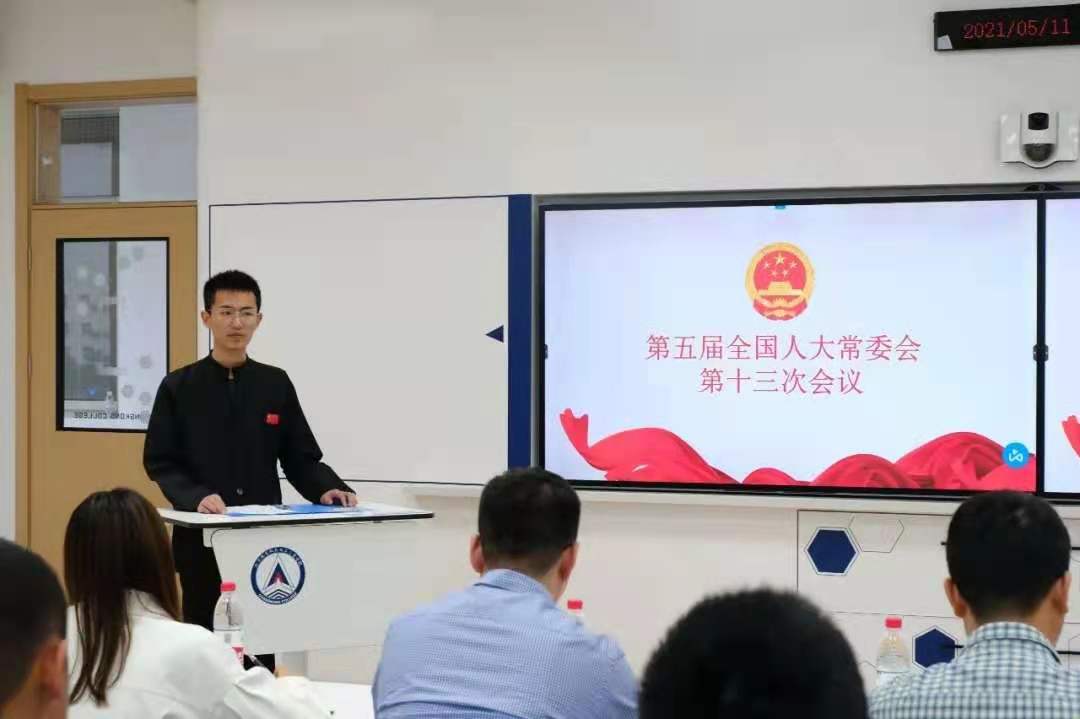 本次开展有关第五届全国人大常委会第十三次会议的学习,主要围绕县级选举的多种形式进行展开。今年是建党一百周年,党史可以分为四个阶段进行学习,1921-1949年的新民主主义革命、1949-1978年社会主义革命和建设、1978-2012改革开放和中国特色社会主义道路的开创与发展以及2012-2021中国特色社会主义进入新时代,这些是我们同学需要阶段性进行学习的。同时学院在读书角也设有许多党史相关的学习图书,大家可以在闲暇之余切实的学习党史、了解党的精神,党的精神中必不可缺的一部分有跟我们专业相关的航空精神,我们这一代青年更应该在历史中学习这种品质,同时传承和发扬我党艰苦奋斗的精神。最后祝愿大家在好好学习的过程中能真真正正地落实党史学习。