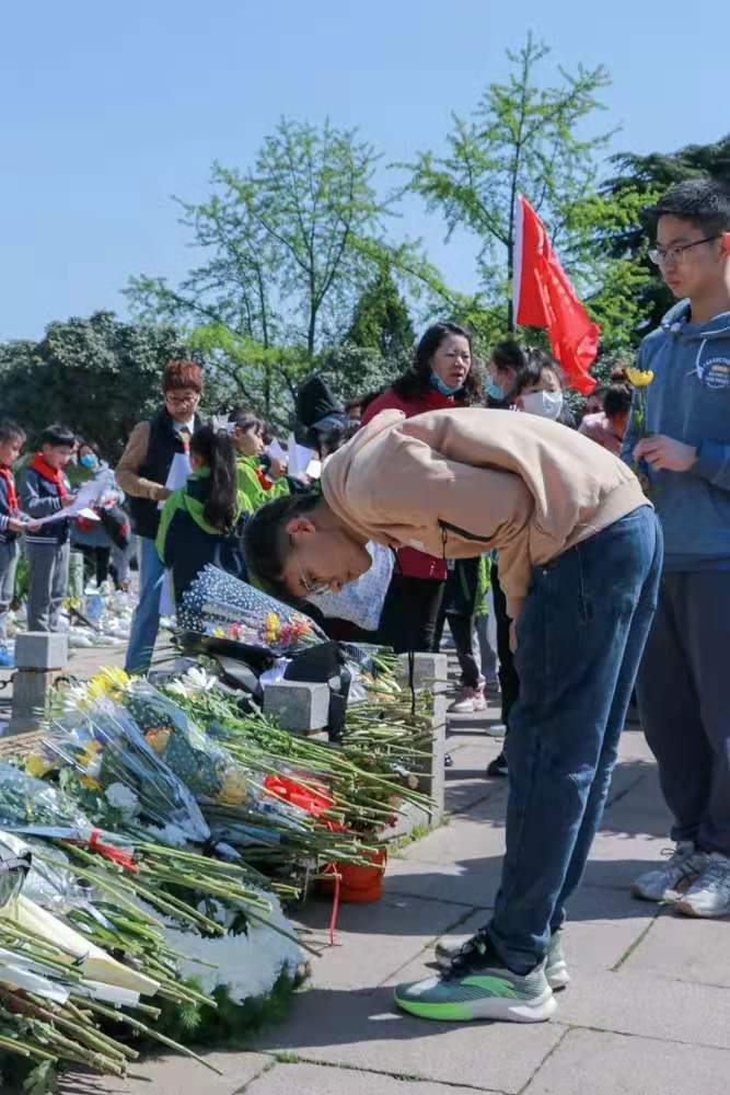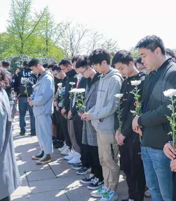 随后,两个支部的同学自发默哀一分钟。礼毕,在场师生依次向烈士敬献花朵,表达缅怀之意。