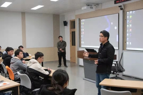 首先,盛汉霖教授以简洁易懂的语言向同学们介绍了国际空中机器人大赛的概况及其第八代任务,并且与同学们分享了研究过程中所遇到的难题和解决方案。盛汉霖教授更是告诉同学们,当一个人付出足够多的努力时,自然会得到上天的眷顾。从盛汉霖教授的讲述中,同学们了解到了创新精神与逆向思维的关键作用,更是对竞赛产生了浓厚的兴趣。