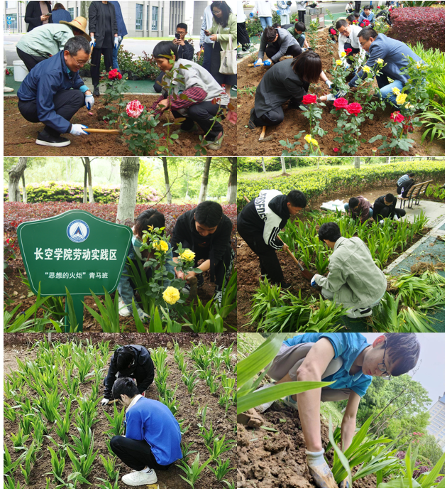 揭牌仪式结束后,师生一同前往将军路校区环砚湖人行步道,现场观看了种植专家的种植演示过程,了解了种植步骤,学习了部分劳动工具的使用方法。种植开始,各团支部按责任区开展花草种植活动,老师们也积极参与其中,与学生们一同挖坑、栽种、填土、固定。现场气氛热烈,同学们积极参与,互相配合,在劳动中体现对校园环境的关心,在合作中体会一同拼搏的力量,在汗水中寻找劳动的意义,最终27个团支部及学院青马班共同打造了2000多平方的长空绿化步道景观,为校园环境美化贡献了力量。