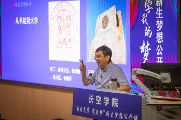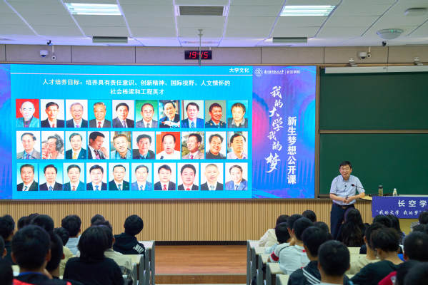 公开课伊始,施大宁围绕“大学目标、使命担当和文化自信”多维度阐释大学的意义,强调读大学即为成人、成事、成大事,通过对比西方柏拉图学院和我国岳麓书院的特点提出“书院将会洗礼人的思想和世界观”。施大宁将大学使命分解为“人才培养、科学研究、社会服务、文化交融”,以此鼓励长空青年在书院文化的浸润中爱国、励志、求真、力行。大学教育是知识、素质、能力、精神兼修完备的过程,施大宁寄语新生要在大好年华里要尽可能多地掌握知识理论,沉淀自身素质,加强创新能力、培养理解、交流与合作能力。