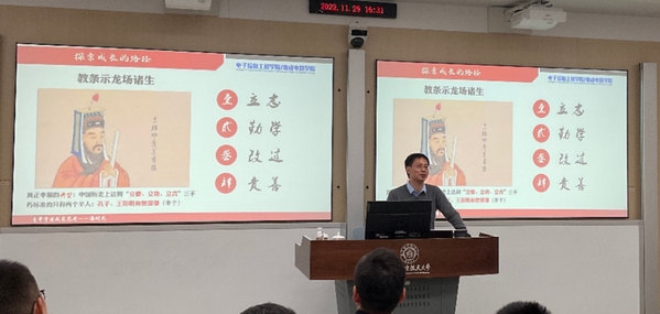 接着,潘院长从“立志、勤学、改过、责善”四个方面讲起,以古今中外的名人事迹为例,结合自身成长与育人体会,指出在青年时期立鸿鹄之志、不断提升自我、持续努力奋斗终身是在成长过程中体验幸福的重要途径。