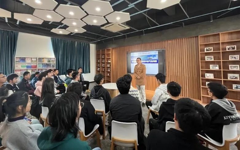 张老师所在的科研团队长期专注于进气道技术研究。张老师生动地把进气道比喻成发动机的“咽喉要塞”,深入浅出地为我们讲解了团队的研究背景、军用航空飞行器发展的趋势,展示了团队的研究条件和研究内容。其中的风洞群、精细仿真软件等令同学们惊叹不已。张老师还向大家介绍了他所研究的宽域变结构进气道技术,其目标是实现进气道更高效稳定地工作。