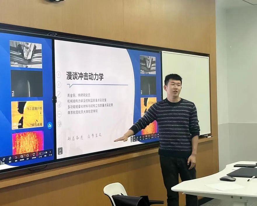 高老师向同学们分享了他对冲击动力学的研究理念——从“see”到“understand”到“control”再到“see”形成一套闭环研究,并举具体研究实例“防弹衣纤维断裂受力方式”来说明上述理念在实际研究中的应用,为同学们今后的学习科研提供了思路启发。