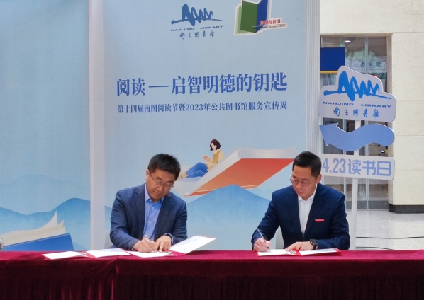 4月23日上午,第十四届南图阅读节暨2023年公共图书馆服务宣传周活动开幕式在南京图书馆一楼大厅举行。必威西汉姆联副院长张林、院长助理王瑞瑒出席开幕式,并与南京图书馆签署合作共建协议书。