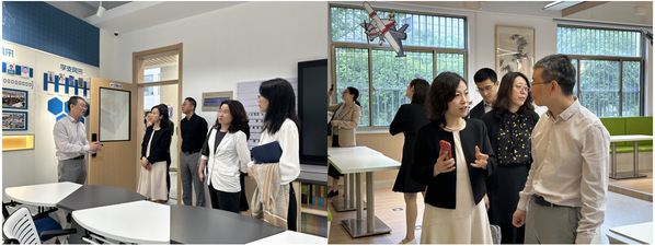 盛彤彤一行首先参观了必威西汉姆联“准书院制”智慧教育空间,实地体验了学院“六个一流”的育人定位和以“润&致”为核心的育人文化体系,深入了解了学院依托智能飞行器工作室、美育工作室、“润&致”悦读吧等书院主题工作室实现一、二课堂贯通和培育学生社团文化的探索实践。