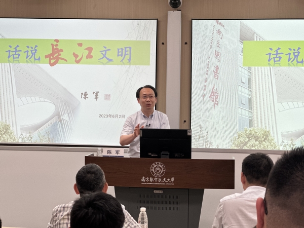 陈军馆长还重点介绍了长江流域的开发以及“政北经南”格局的形成,通过与其他文明的母亲河作对比,论述了长江文明研究与关注的现实价值、学术价值。他表示,研究长江文明是为了形成中华民族的文明参考坐标,为激活中华优秀传统文化的生命力、传续中华民族精神命脉注入强大精神力量,希望同学们坚定文化自信,为中华优秀传统文化创新性发展、创造性传承贡献力量。