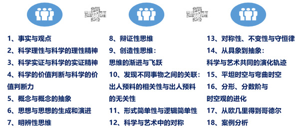《耶鲁报告》中提出: “大学的目的,不是教导单一的技能,而是提供广博的通识基础;不是造就某一行业的专家,而是培养领导群伦的通才。《科学、哲学与艺术的沉思》课程由清华大学航天航空学院工程力学系殷雅俊教授领衔讲授,同时邀请清华大学艺术系、哲学系大咖教授们联袂演绎,通过教师与学生一起,从科学、哲学和艺术相互交融的视角,追寻伟大先驱们探索的足迹,从伟大先驱们的思维中学习思维,从伟大先驱们的创造中学习创造,鉴赏伟大先驱们的智慧,体验人类心智的荣耀。其目的并不是向学生传授具体的知识点,而是致力于引导学生养成创造性的思维素质,塑造富于创造力的思维模式。换言之,如何激发学生的思维是贯穿本课程始终的主题。