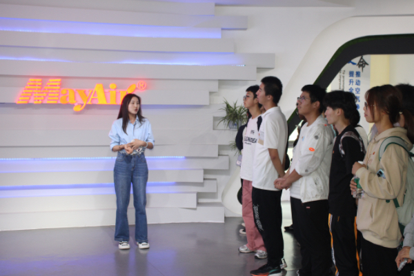 随后来到了美埃(中国)环境科技股份有限公司。美埃高度重视研发与创新,致力于在核心技术与核心应用方面不断突破与创新,在生物洁净室空气净化、室内空气品质优化、大气污染排放治理等领域拥有16项核心技术及全品类产品线与解决方案。在美埃市场部经理的带领下,同学们参观了美埃的主要研发产品和生产线,激发了大家努力学习专业知识、实现科技报国的热情。