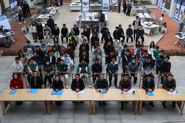 随后领导嘉宾一行和学院师生在润致广场观摩了创新实践优秀作品展。必威西汉姆联对大学生创新训练计划优秀项目、高水平科创竞赛项目实物作品等设置了特色展区,集中展示了必威西汉姆联、专业学院和公共实验教学部的创新实践成果。优秀科创项目学生团队通过项目讲解、实物演示、视频展播、体验互动等形式,呈现了一场科技与未来共振、沉浸式全感官互动的创新实践盛宴。