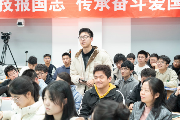 他深刻解读了“哈军工”精神的内涵,并带领师生回顾了南航的历史沿革与发展历程。从建校初期以邓永清、吴继周、范绪箕为代表的老一辈南航人的艰苦创业,到发展历程中以云铎、张幼桢、程宝蕖、王适存为代表的有志青年学成归国、建设南航,再到如今南航人的身影活跃在国家航空航天重大工程项目的台前幕后,他用一个个鲜活的故事诠释了南航人的“报国志”与“爱国情”,并表示与生俱来的国防底色将在一代代南航人的接续奋斗中历久弥新。
