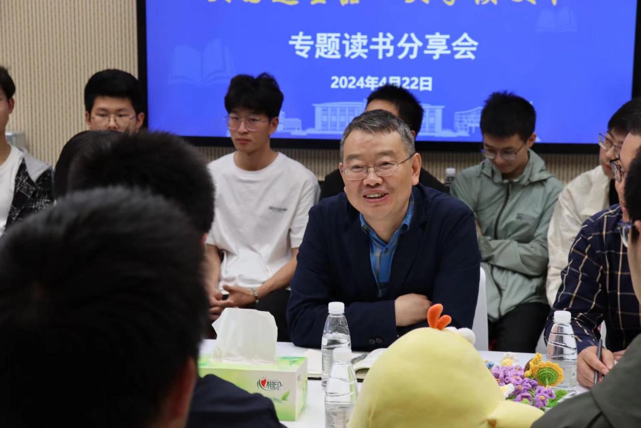 蒋彦龙与同学们就读书进行了深入交流。他详细阐释了“润&致”读书文化节“溯源文明、领略文化、丰润思想、汲取力量”的主旨内涵。他表示,读书可以帮助我们更好地理解自然、理解社会、理解自己、理解他人。他强调,学院将持续致力打造“处处充满书香”的育人环境,他寄语在场师生要读经典之书与最新理论之书,读有字之书与无字之书,读有用之书与无用之书,读人文之书与科技之书,读纵穿古今之书与横跨中外之书,不断提升判断力、鉴赏力、适应力、发展力、引领力,做一个智商、情商、逆商、魂商兼具的人。