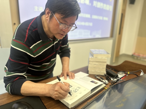 曹峰峻现场为学生赠送签名版《爱恨今生》