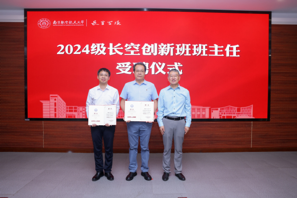 蒋彦龙代表学院为卢天健、潘时龙颁发2024级长空创新班班主任聘书。