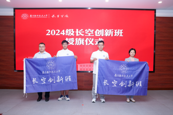 庞依达、彭聪向2024级长空创新班授旗,旗帜飘扬象征着责任与力量,标志着2024级长空创新班班级建设踏上新征程。