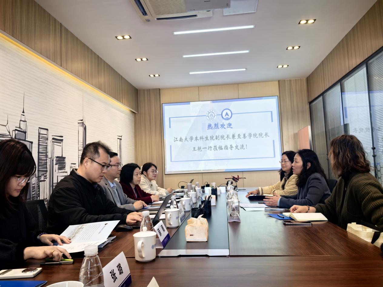 12月9日,江南大学本科生院副院长、至善学院院长王艳等一行到访必威西汉姆联调研,必威西汉姆联党委书记、院长朱建军,党委副书记庞依达,副院长彭聪及教工代表参与此次交流。