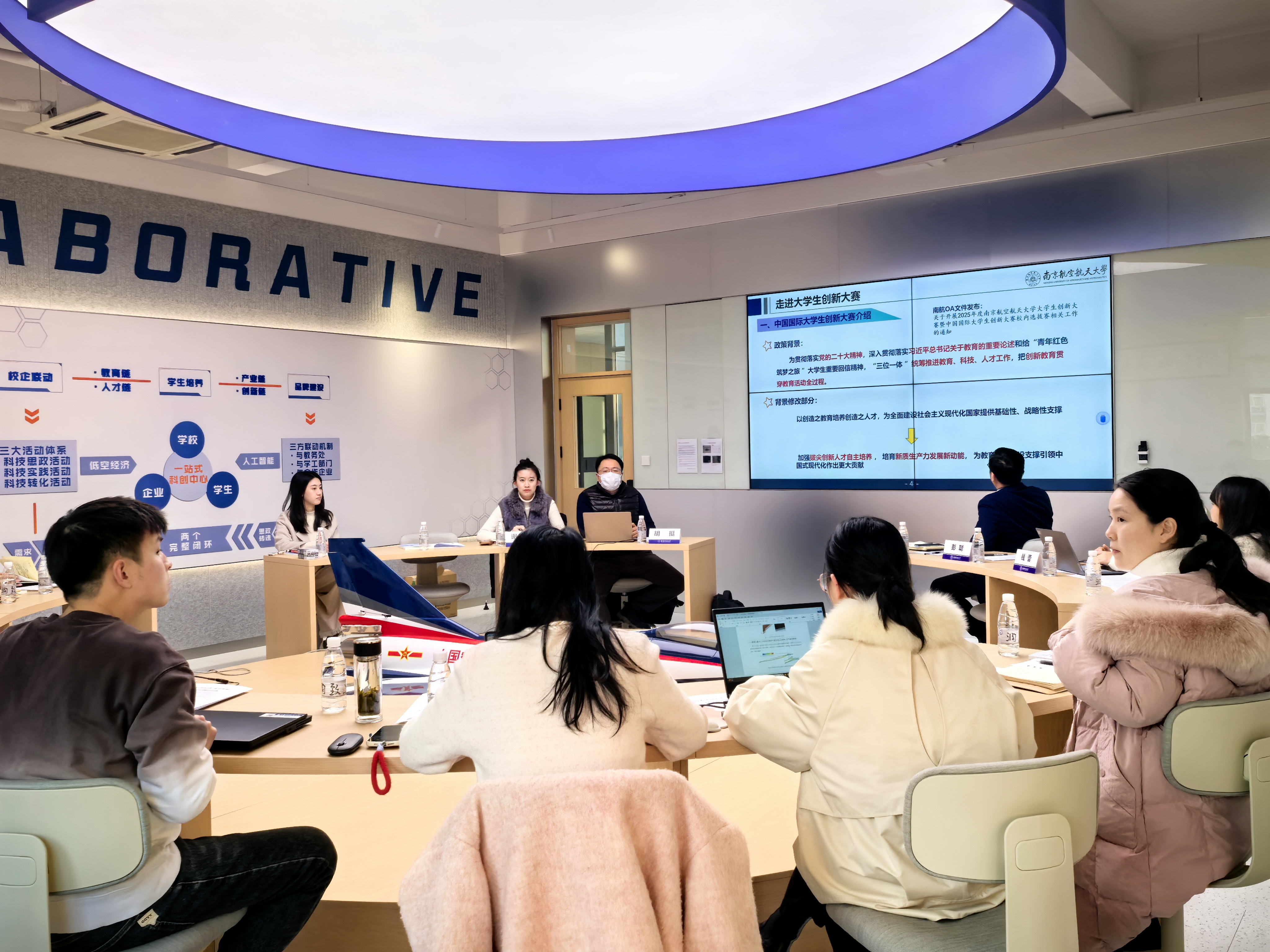 胡挺就近年来中国国际大学生创新大赛在赛制规则、赛道设置、评审导向等方面的变化作了系统解读,梳理了备赛全流程的关键节点,并从选题策略、团队建设、过程管理到成果凝练等方面进行了专业指导。钱蕾对2024—2025年度学院学生竞赛获奖情况及科创参与频次进行了深入分析。彭聪提出了高水平赛事组织建议,应强化项目、学生、组织三大要素的有机统一,应主动搭建师生对接平台,推动“高年级带低年级、导师带团队”的传帮带机制,通过项目匹配与持续培育,实现赛事育人资源的有效整合与效能提升。